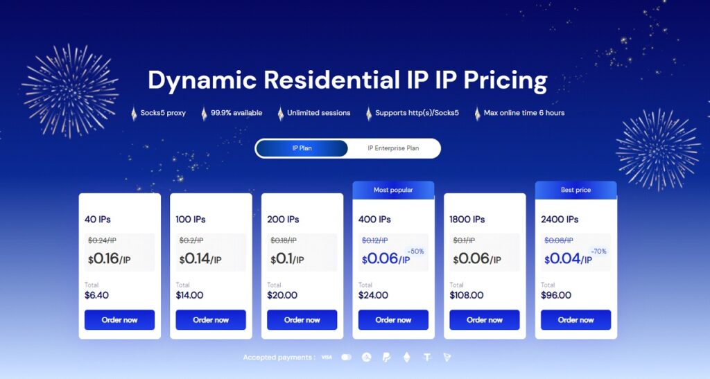 Individuals /small teams: Economical packages with low IP volume (e.g., 100-1000 IPs) + basic traffic are available to meet the needs of small crawlers, account management, etc., with a starting cost as low as tens of dollars.
