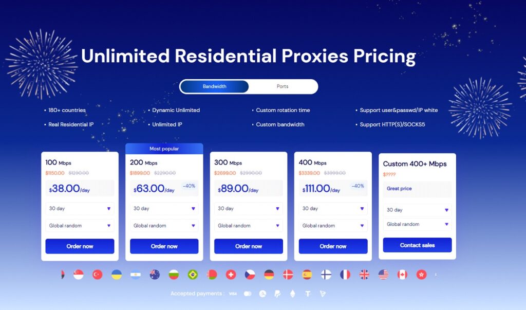 ● Enterprise-level discounts: For large-scale demands (such as an enterprise package for 100,000 IPs), the unit price can be further locked at US$0.032/IP, taking into account massive resources and controllable costs, and adapting to complex scenarios such as large-scale data capture and multi-regional marketing.